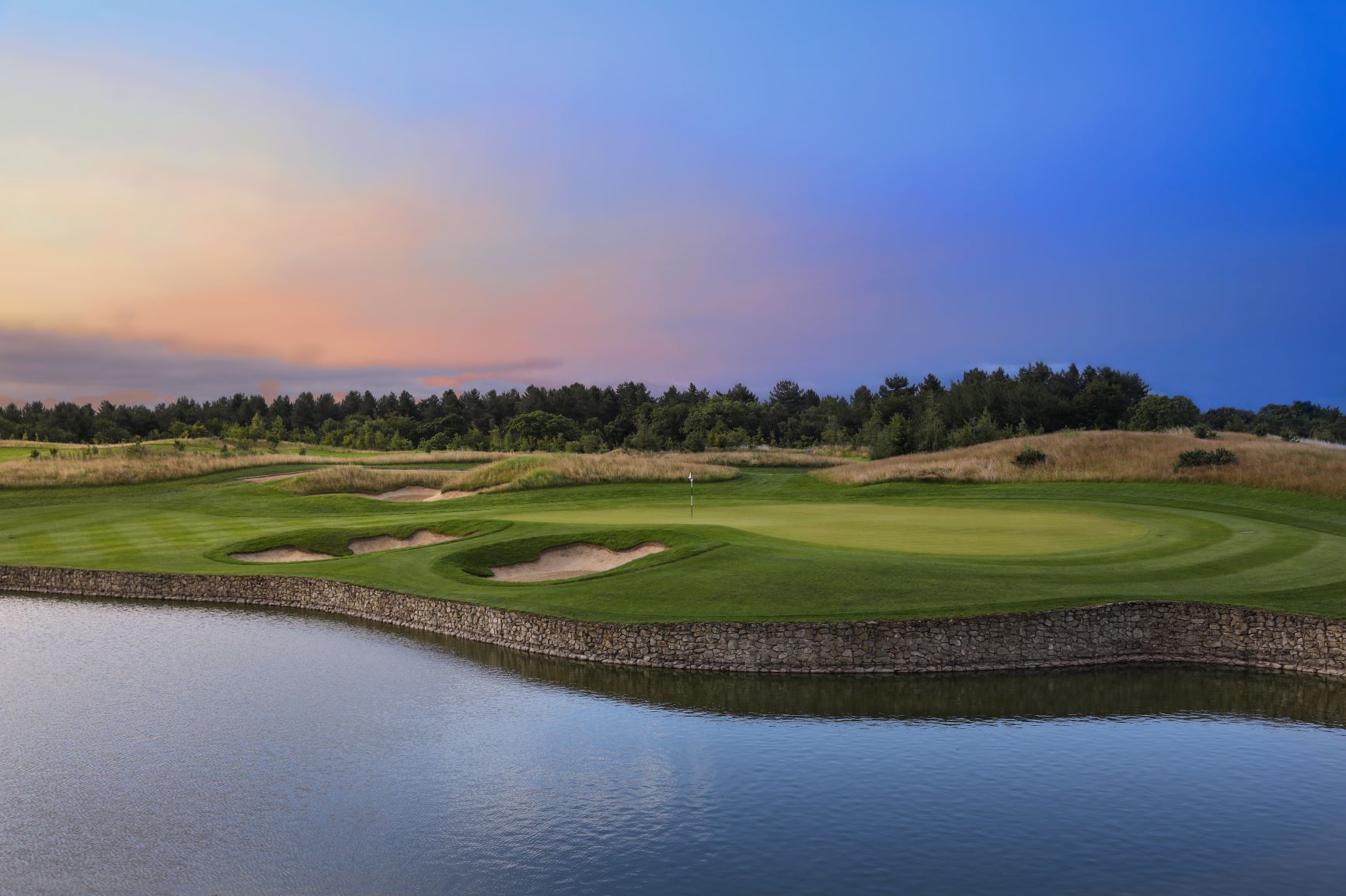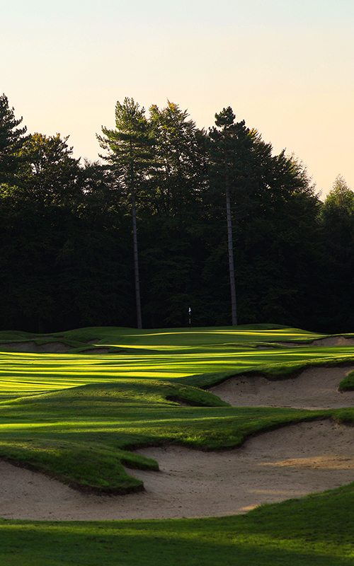 Exploring pre-existing pine woodland on holes one to five, giving the course a distinctly mature and natural feel at the start of the round, the course then moves into areas which have been carefully yet dramatically shaped to offer both an aesthetically beautiful contribution, and a genuine challenge. This is achieved through a multitude of well-planned hazards, breath-taking views, and strategic hole design. With the woodland feel returning for the final five holes, the home stretch stands up against any in the world.